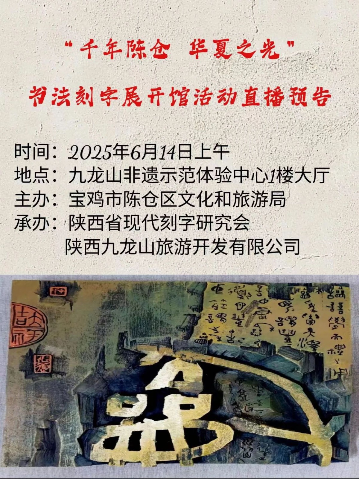【直播预告】“千年陈仓 华夏之光”书法刻字展开馆活动