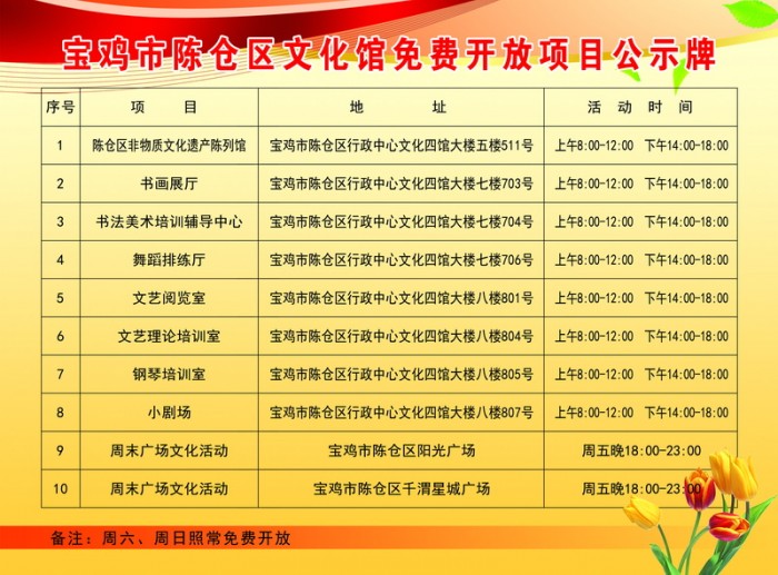 免费开放项目公示牌