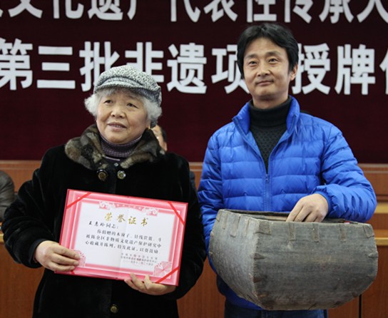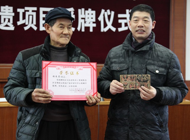 民间小吃传承人领取第三批非遗项目牌