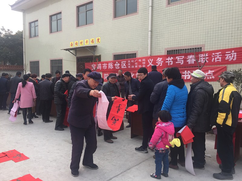 近期,伴着越来越浓的年味,区文化广电局、区文化馆、陈仓书法家协会组织部分书协成员到千渭街道办千渭时代广场、阳平镇西枸村、县功镇张家山村开展书法家义务为群众书写春联的公益活动。